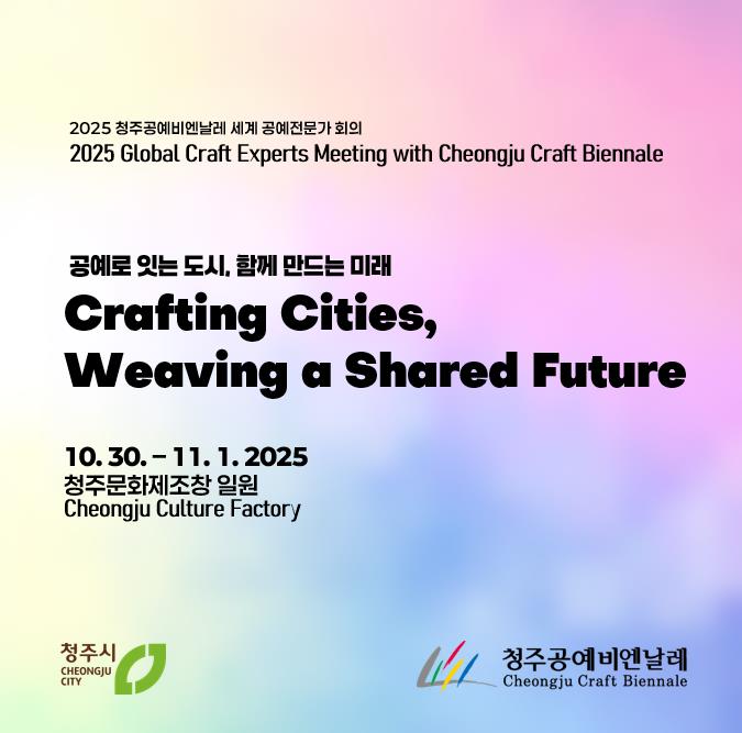 각국 도시 행정의 수장부터 문화전문가까지 한자리에 모여 글로벌 공예도시들의 연대와 협력, 동반 성장을 논의하게 될 이번 세계 공예전문가 회의는 10월 30일부터 11월 1일까지 2025 청주공예비엔날레가 진행 중인 대한민국 청주 문화제조창 일원에서 개최된다.