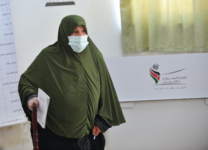 (프레스뉴스)채정병 특파원=10일(현지시간) 130석의 국회의원을 선출하는 제19대 요르단 총선이 전국적으로 실시된 가운데 기표를 마친 한 여성이 부스에서 나오고 있다.