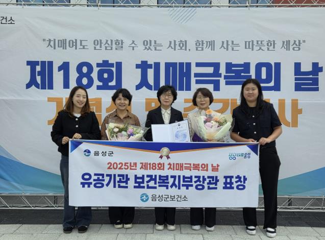 음성군치매안심센터는 열린 제18회 치매극복의 날 기념식에서 치매관리사업 유공기관 부문 보건복지부 장관 표창을 수상했다고 1일 밝혔다.