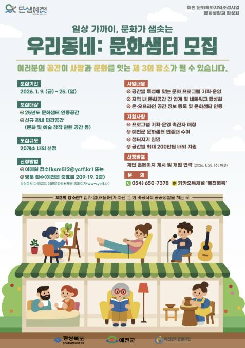| ▲ 예천군, 일상 공간에서 사람과 문화를 잇다… '우리동네:문화샘터' 모집 |