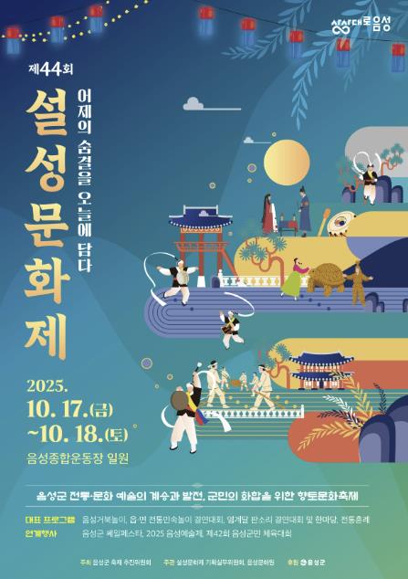 설성문화제와 연계한 행사도 마련했다. 관내 기업이 생산한 제품과 농산물을 저렴하게 구매할 수 있는 ‘음성군 쎄일페스타’가 17일부터 19일까지 열리고, ‘2025 음성예술제’도 17일부터 23일까지 진행한다. 19일 음성종합운동장에서 ‘제42회 음성군민 체육대회’를 열어 군민 화합의 장을 이어간다.