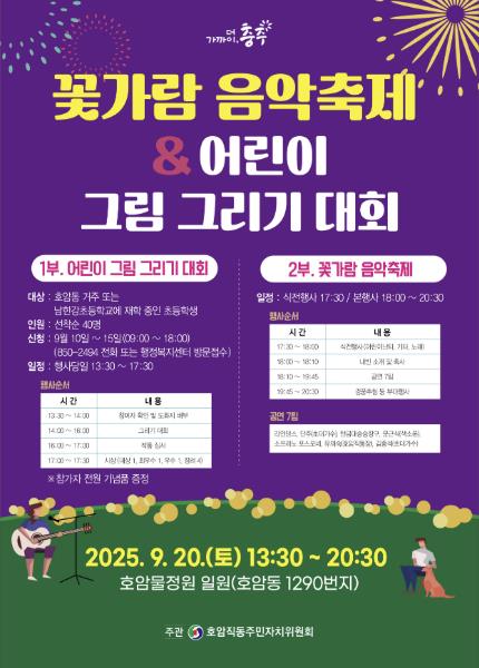충주시 호암직동주민자치위원회가 주관하는 ‘호암직동 꽃가람 음악축제’가 오는 20일 호암물정원(호암동 1290) 일원에서 개최된다.