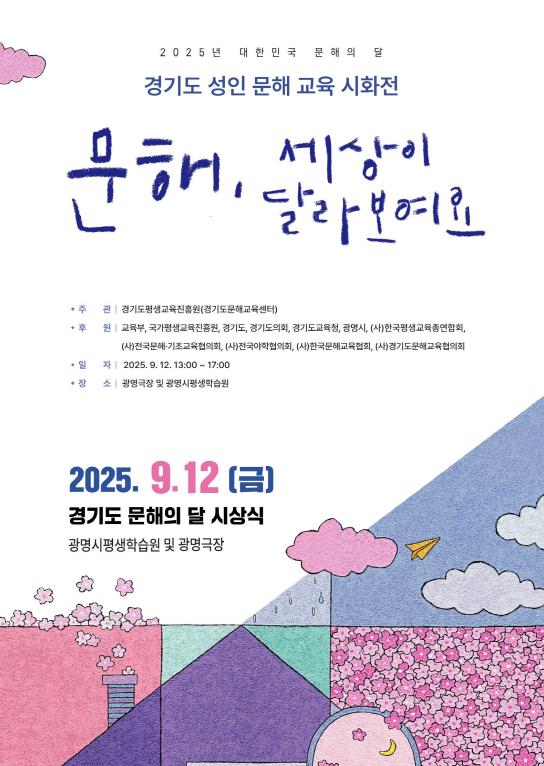 경기도평생교육진흥원은 세계 문해의 날(9월 8일)을 기념해 오는 12일 광명시평생학습원과 광명극장에서 ‘2025년 경기도 문해의 달’ 기념행사를 연다.