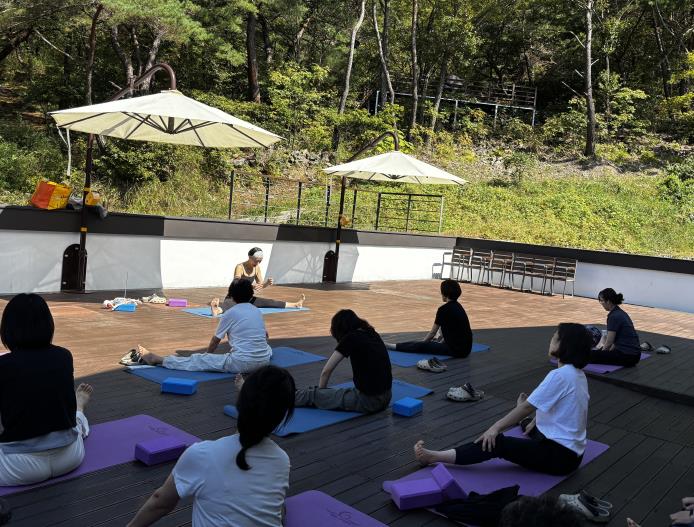 충북 단양군 단성면 소선암 치유의 숲에서 지난 27일 진행된 숲속 요가 프로그램이 성황리에 마무리됐다.