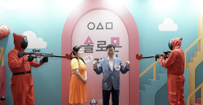 이번 행사는 넷플릭스 드라마 ‘오징어 게임’을 패러디한 ‘솔로몬 게임’ 주제로 열려 눈길을 끌었다.