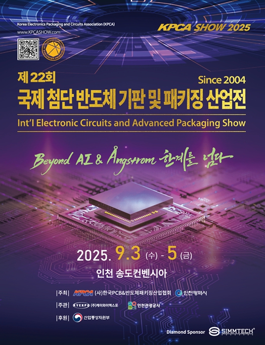 인천광역시는 오는 9월 3일부터 5일까지 송도컨벤시아에서 국내 최대 반도체 패키징(후공정) 산업 전시회인 ‘KPCAShow 2025 국제첨단반도체기판 및 패키징산업전’이 개최된다고 밝혔다.