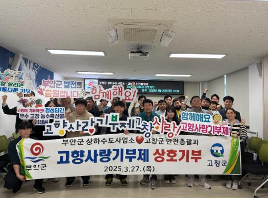 전북특별자치도 고창군 안전총괄과와 부안군 상하수도사업소 직원들은 지난 27일 고향사랑기부제의 활성화와 지역 간 상생을 도모하기 위해 고향사랑 상호기부에 동참했다.
