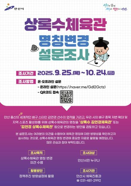▲ 상록수체육관 명칭변경 설문조사 디지털 홍보자료 |