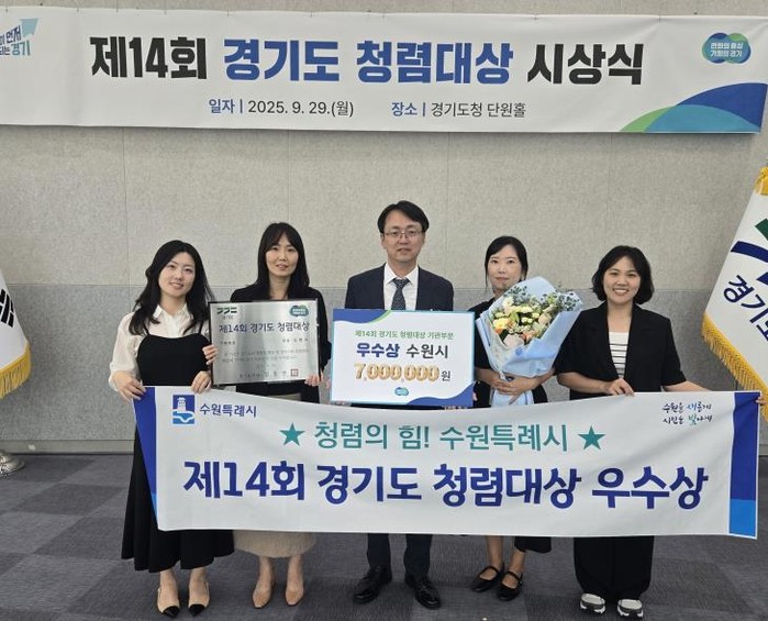 수원특례시가 제14회 경기도 청렴대상에서 우수상으로 선정됐다. 시상식은 29일 경기도청 단원홀에서 열렸다.