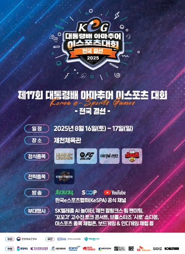 문화체육관광부는 8월 16일부터 17일까지 제천체육관에서 ‘제17회 대통령 배 아마추어 이스포츠 대회’ 전국 결선을 개최한다. 이번 대회는 네이버 치지직, 숲(SOOP), 유튜브를 통해 온라인으로 생중계하며, 누구나 현장에서 무료로 관람할 수 있다.