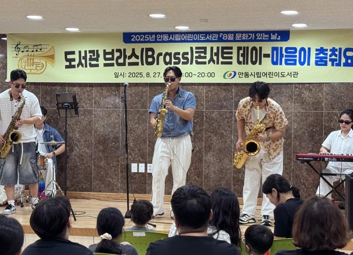 안동시립어린이도서관은 8월 27일, 8월 ‘문화가 있는 날’을 맞아 시민과 함께하는 특별 공연 ‘도서관 브라스 콘서트 데이-마음이 춤춰요’ 행사를 성황리에 마무리했다고 밝혔다.