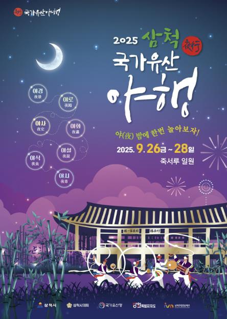 삼척의 가을밤이 국가유산의 향기로 물든다. 삼척시는 오는 9월 26일부터 28일까지 3일간, 죽서루와 성내동 일원에서 '2025 삼척 국가유산 야행'을 개최한다. 천년의 세월을 견뎌온 문화유산에 빛과 이야기를 더해 시민과 관광객에게 특별한 가을밤의 추억을 선사할 예정이다.