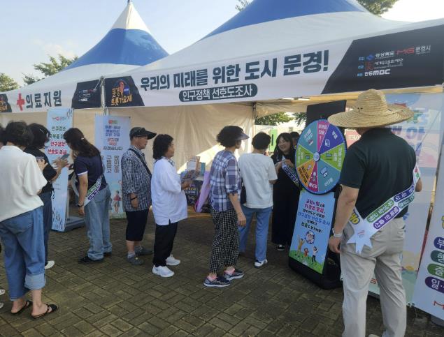 문경시는 지난 23일 열린 ‘문경트롯가요제’ 행사장에서 인구감소 위기에 대응하기 위해 추진 중인 정책에 대한 시민들의 인식과 선호도를 파악하고, 향후 정책 방향을 구체화하기 위해 시민과 방문객 400여 명을 대상으로 인구정책 선호도를 조사했다.