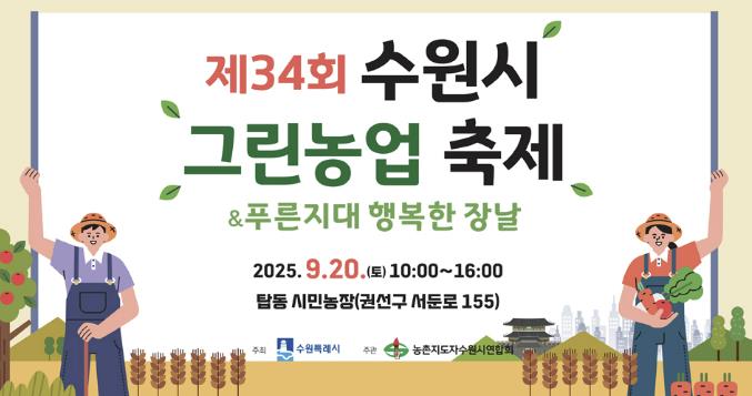 농업인과 시민이 함께하는 ‘제34회 수원시 그린농업축제’가 9월 20일 오전 10시부터 오후 4시까지 탑동시민농장에서 열린다.