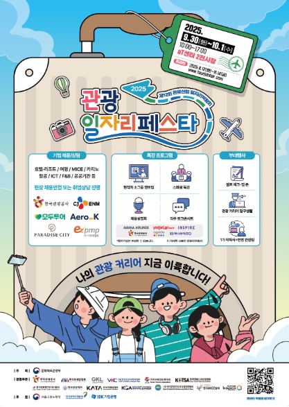 문화체육관광부는 한국관광공사, 한국호텔업협회 등 관광 유관 기관 및 단체와 함께 9월 30일부터 10월 1일까지 에이티센터(aT센터, 서울 서초구)에서 ‘2025 관광 일자리페스타’를 개최한다.