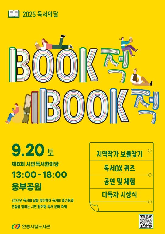 안동시립도서관이 ‘9월 독서의 달’을 맞아 9월 20일 오후 1시부터 6시까지 웅부공원에서 『제8회 Book적 Book적 시민독서한마당』을 개최한다.