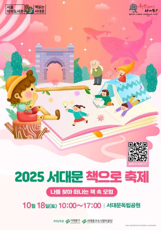 서대문구가 이달 18일 오전 10시부터 오후 5시까지 서대문독립공원 일대에서 책을 통해 가을을 더욱 풍요롭게 하는 ‘2025 서대문 책으로 축제’를 개최한다.