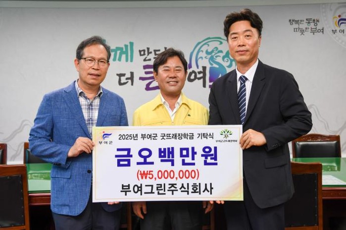 한편, 부여그린주식회사는 부여군 생활폐기물 처리업체로 지난 2015년부터 지역인재 육성을 위한 장학금으로 총 2천만 원을 기탁했다.