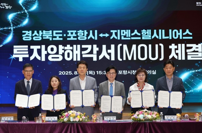 이날 체결식에는 양금희 경제부지사, 이강덕 포항시장, 이명균 지멘스헬시니어스㈜ 한국법인 대표이사와 관련 기관 관계자 등 50여 명이 참석했다.