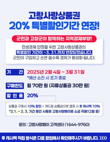 | ▲ 고창군, 고창사랑상품권 특판 3월까지 연장..“최대 20%할인” |