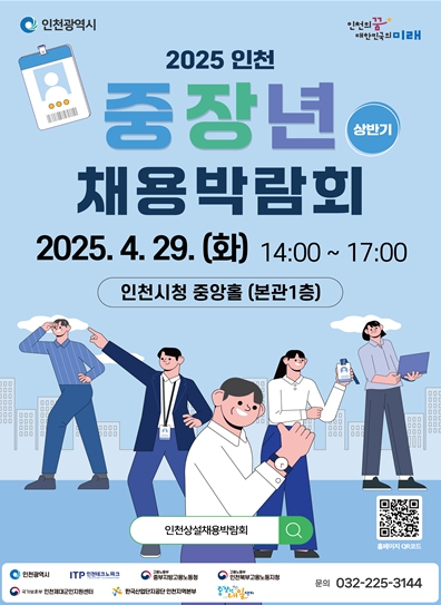 인천광역시는 4월 29일 인천시청 중앙홀에서 ‘인천 중장년 채용박람회’를 개최한다고 밝혔다.