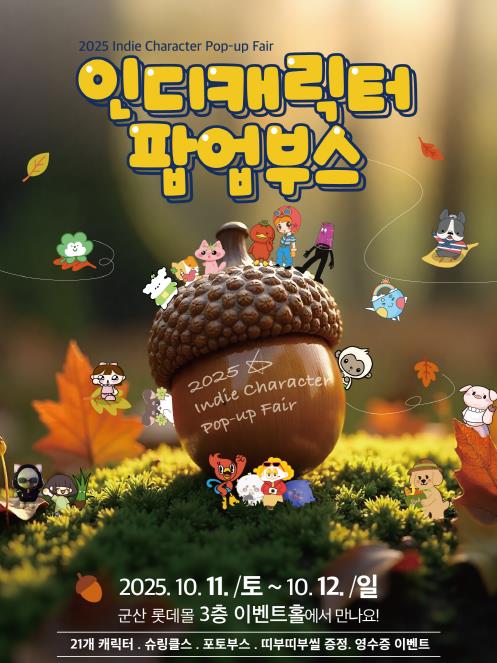 군산시 청년뜰 창업센터가 캐릭터 분야 창업가와 예비창업가 의 제품 홍보 및 판로개척을 지원하는 ‘롯데몰 연계 인디캐릭터 팝업부스 지원사업’을 오는 10월 11일부터 12일까지 진행한다.