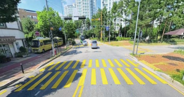 ▲ 강일초등학교(노란색 횡단보도 정비한 모습) |