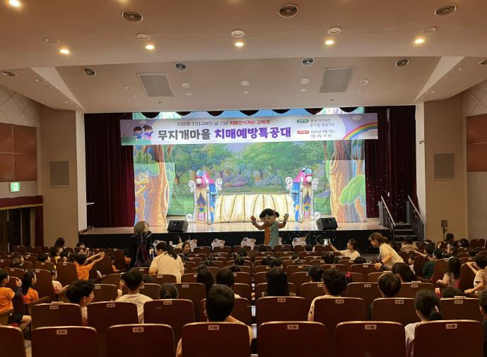 인형극 ‘무지개마을 치매예방특공대’는 어린이들의 눈높이에 맞춰 풀어낸 것으로 무지개마을 척척박사님이 치매에 걸리자 손자 누리와 친구 꼬미가 치매를 예방하고 함께 극복하는 방법을 찾아가는 이야기를 담았다. 아이들의 모험과 따뜻한 가족애를 통해 치매에 대한 올바른 인식을 형성하고, 공감의 메시지를 전하는 데 중점을 두었다.