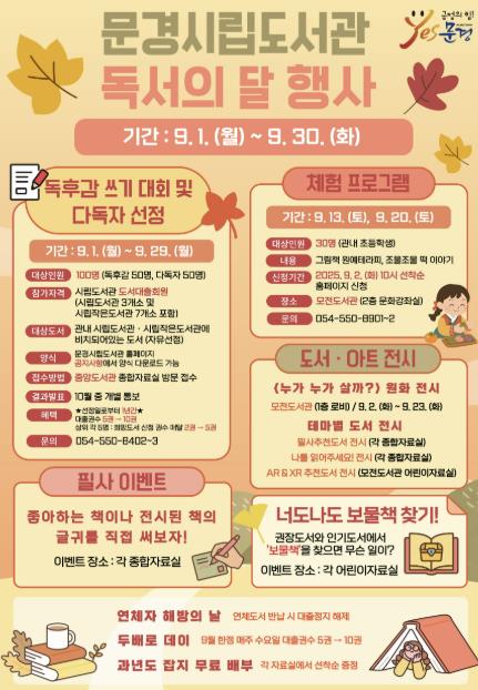 ▲ 문경시립도서관, 9월 독서의 달 행사 운영 |
