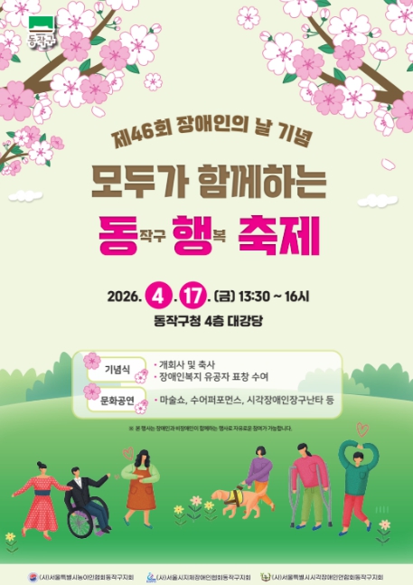 행사는 내일(17일) 오후 1시 30분부터 4시까지 동작구청 4층 대강당에서 장애인·가족·장애인시설종사자 등 300여 명이 참석한 가운데 진행된다.