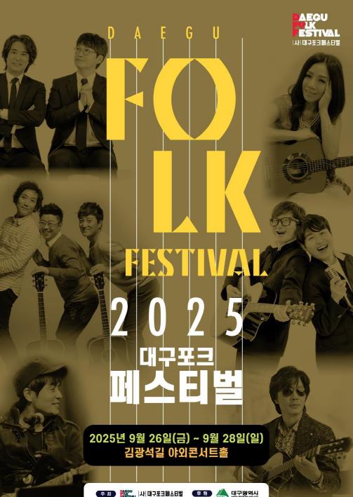 대구광역시와 (사)대구포크페스티벌은 오는 9월 26일부터 9월 28일까지 3일간, 김광석길 야외콘서트홀 일원에서 ‘2025 대구포크페스티벌’을 개최한다.