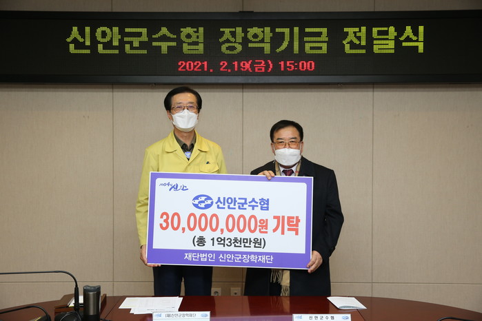 한편 신안군수협은 신안군장학재단에 2017년도부터 장학기금을 기탁해 왔으며 지금까지 총 1억3천만원을 후원하였다.