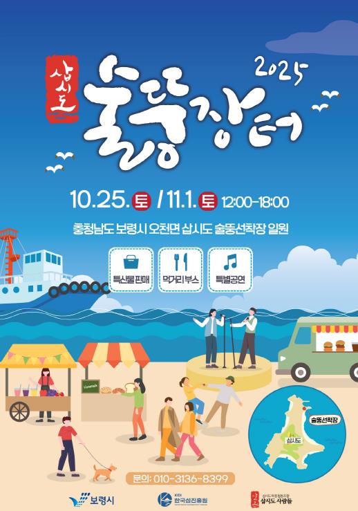 보령시는 11월 1일 오후 12시부터 6시까지 삽시도 술뚱선착장 일원에서 ‘삽시도 술뚱장터’ 행사를 개최한다고 밝혔다.
