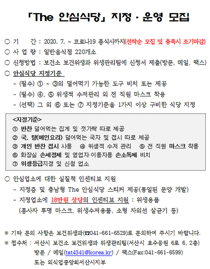| ▲ The 안심식당 지정·운영 모집 공고문. |