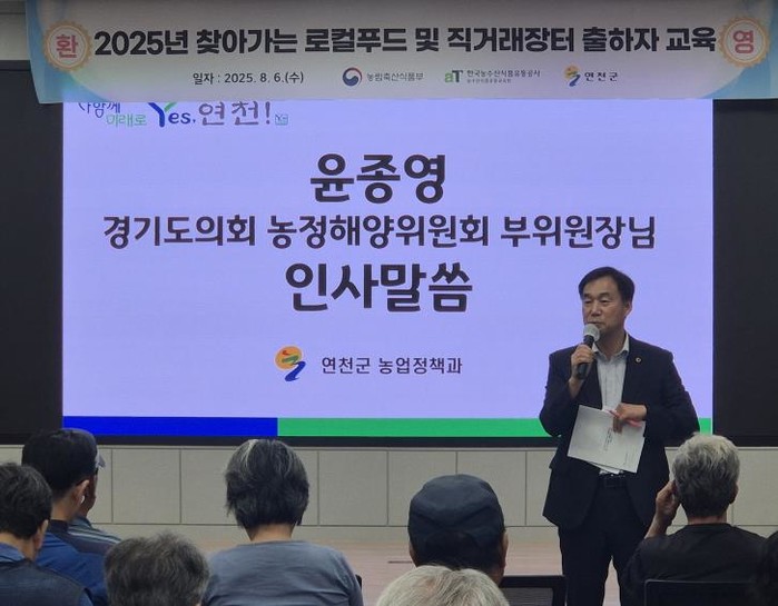 경기도의회 농정해양위원회 부위원장이 윤종영 의원(국민의힘, 연천)이 6일 연천군 농업기술센터 대강당에서 열린 2025년 하반기 로컬푸드 납품농가 교육에 참석해 지역 농가들의 현장의견을 청취했다.
