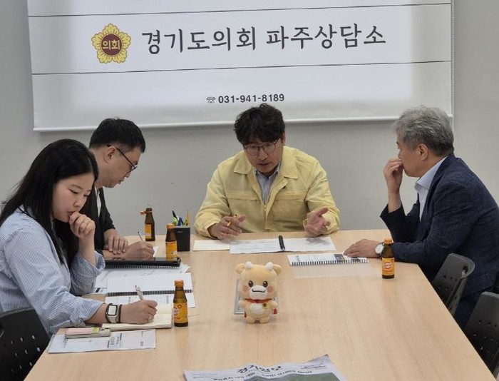 경기도의회 조성환(더불어민주당, 파주2) 의원은 경기도의회 파주상담소에서 경기환경에너지진흥원과 도민 소통행사 추진을 논의하는 협의회를 열고, 파주시에서 10월(예정) 진행할 ‘찾아가는 기후환경 토크콘서트’ 준비 상황을 점검했다.