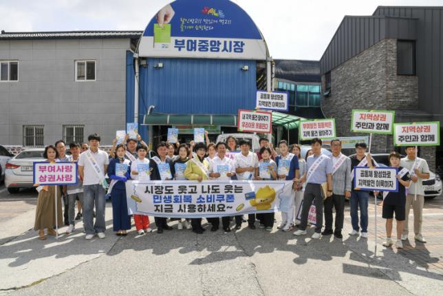 충청남도 부여군은 지난 20일 오전 10시에 부여 중앙시장 일원에서 ‘민생회복 소비쿠폰 사용 진작 캠페인’을 개최했다.