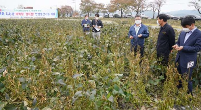 경상북도농업기술원은 21일 안동시 풍산읍 안교리 농가포장에서 신품종 검정콩 ‘새바람’, ‘경흑청’의 품종특성 설명과 안정생산기술개발 현장 평가회를 가졌다.