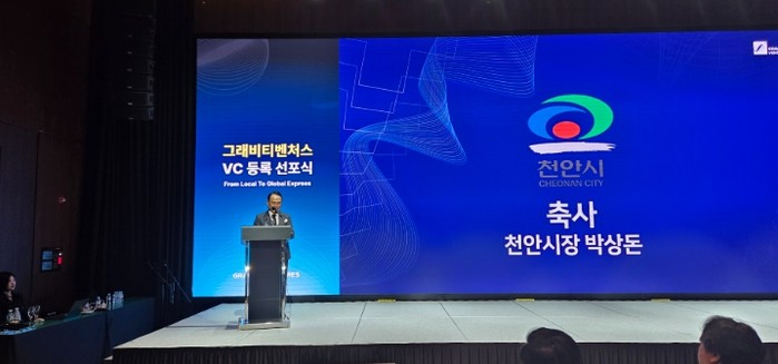이날 박상돈 천안시장은 선포식에 참석해 그래비티벤처스의 천안 최초 벤처캐피털 법인 등록을 축하하고 지역의 입지 경쟁력과 사업화 전주기 지원 체계 등 천안형 투자 생태계를 홍보했다.