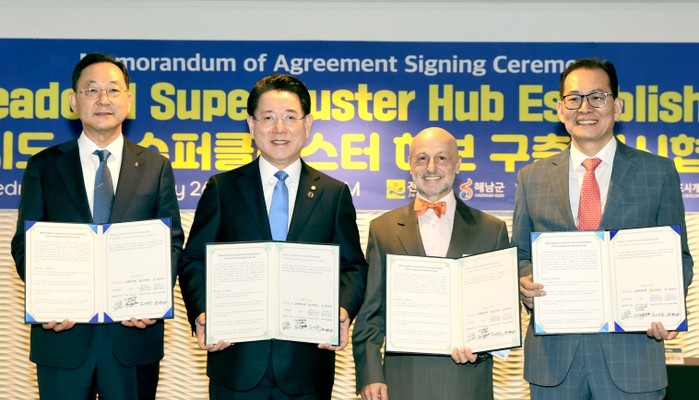 전라남도는 26일(현지 시간) 미국 샌프란시스코 하얏트 호텔에서 퍼힐스(FIR HILLS), 서남해안기업도시개발(주), 해남군과 함께 ‘솔라시도 AI 슈퍼클러스터 허브’ 구축을 위한 업무협약을 체결했다.