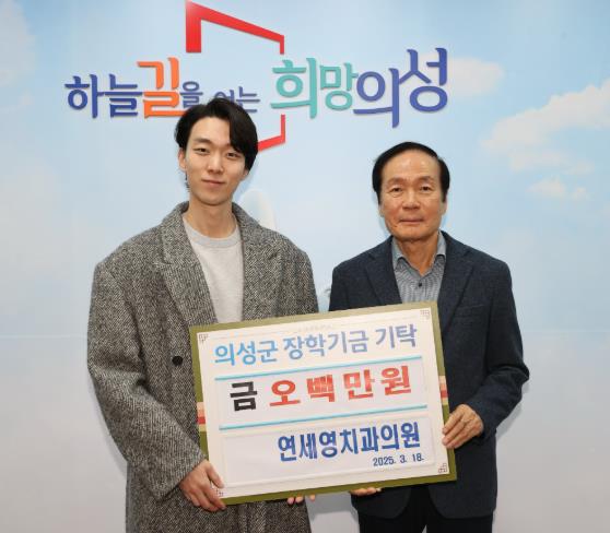(재)의성군인재육성재단은 지난 18일 의성에 위치한 연세영치과의원이 지역 인재육성을 위해 장학금 500만원을 기탁했다고 밝혔다.