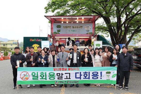 먼저 ‘텀블러데이’ 운영을 통해 일회용 컵 사용을 줄이고 개인 컵 사용을 활성화하여 텀블러를 가지고 오는 군민들에게 음료를 무료로 제공함으로써, 일회용품 사용을 줄이는 자원절약과 폐기물 감소에 다같이 동참했으며,