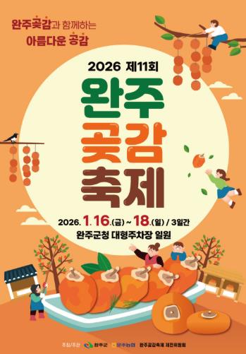 완주군이 오는 16일부터 18일까지 3일간 완주군청 대형주차장 일원에서 ‘제11회 완주 곶감축제’를 개최한다.