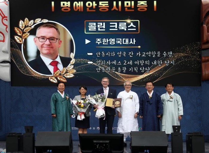 안동시는 지난 10월 3일 열린 제23회 ‘안동의 날’ 기념식에서 콜린 제임스 크룩스(Colin James Crooks) 주한영국대사에게 명예안동시민증을 수여했다고 밝혔다.