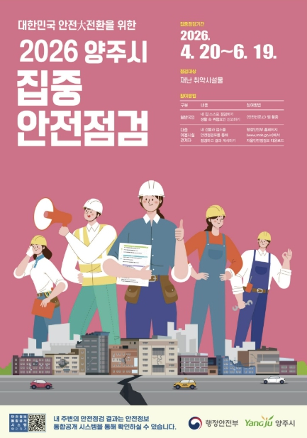 시민 안전 사각지대 해소를 위해 경기 양주시가 ‘2026년 집중 안전 점검’을 추진한다.