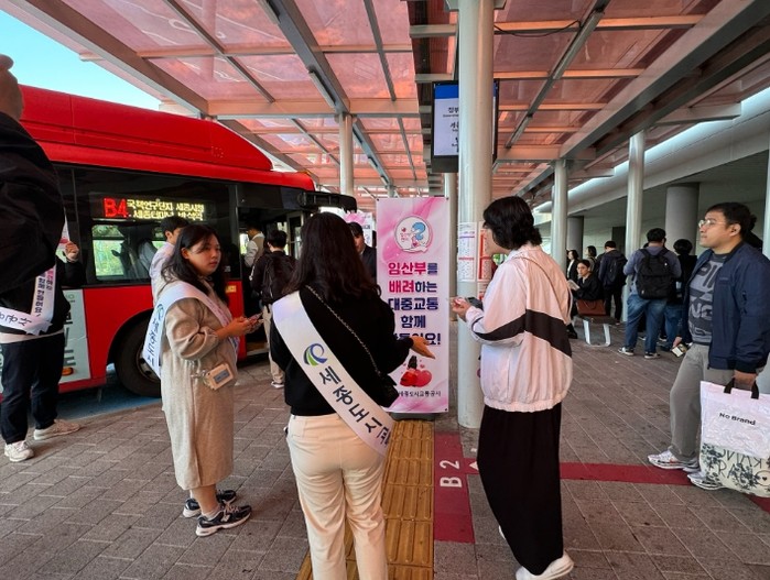 세종도시교통공사는 10월 10일 ‘임산부의 날’을 맞아오송역 버스환승센터에서 임산부 배려 캠페인을 펼쳤다.