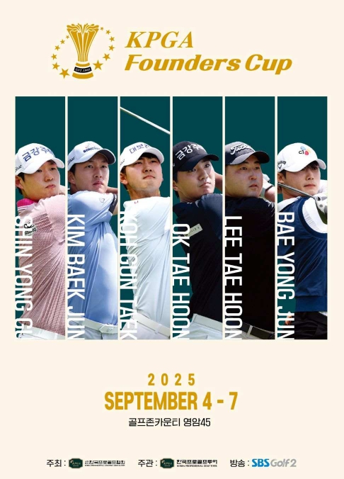- ‘KPGA 파운더스컵’은 1968년 KPGA를 창설한 창립회원에 대한 예우와 그 업적을 기리고자 창설한 대회다. 2024년 신설돼 올해로 2회째를 맞이한다. 총상금 7억 원, 우승상금 1.4원 규모다. 총 144명의 선수가 출전하며 4라운드 72홀 스트로크 플레이 방식으로 펼쳐진다. 2라운드 종료 후 상위 60명(동점자 포함)이 3라운드에 진출한다. 우승자에게는 제네시스 포인트 1,000포인트와 투어 시드 2년이 지급된다.
