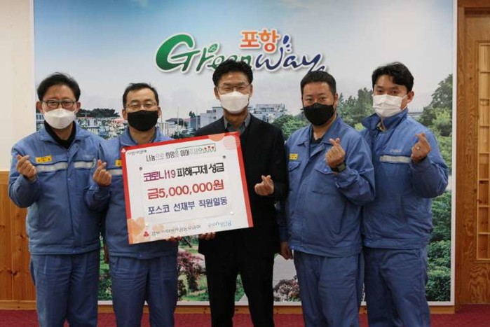 [프레스뉴스] 배영달 기자= 포항시는 코로나19 장기화로 생계곤란을 겪고 있는 포항시민을 위해 써 달라며 포스코 포항제철소 선재부 직원들이 십시일반으로 모금한 500만 원을 기탁했다고 16일 밝혔다.