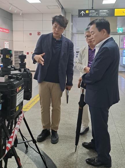 경기도의회 도시환경위원회 김종배 의원(더불어민주당, 시흥4) 은 지난 6월 25일, 김포 도시철도 고촌역 등 지하역사에 설치된 미세먼지 흡입매트 실증사업 현장을 방문하여 설치 완료 상황을 점검하고 관계자들과 개선 방안을 논의했다.