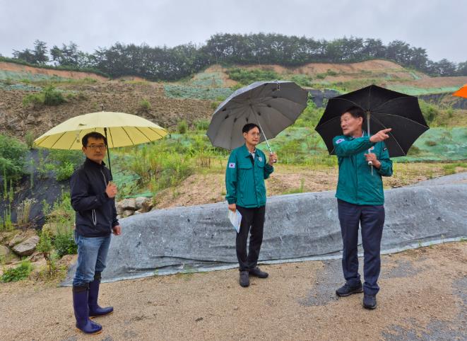 산업건설위원회는 산사태취약지역으로 지정된 송학면 도화리의 산사태 위험지를 방문해 현장 상태를 면밀히 살폈으며, 산림과장 등 관계 공무원과 함께 산사태 예보 발령 등급에 따른 주민 대피체계 구축에 대해 논의했다.